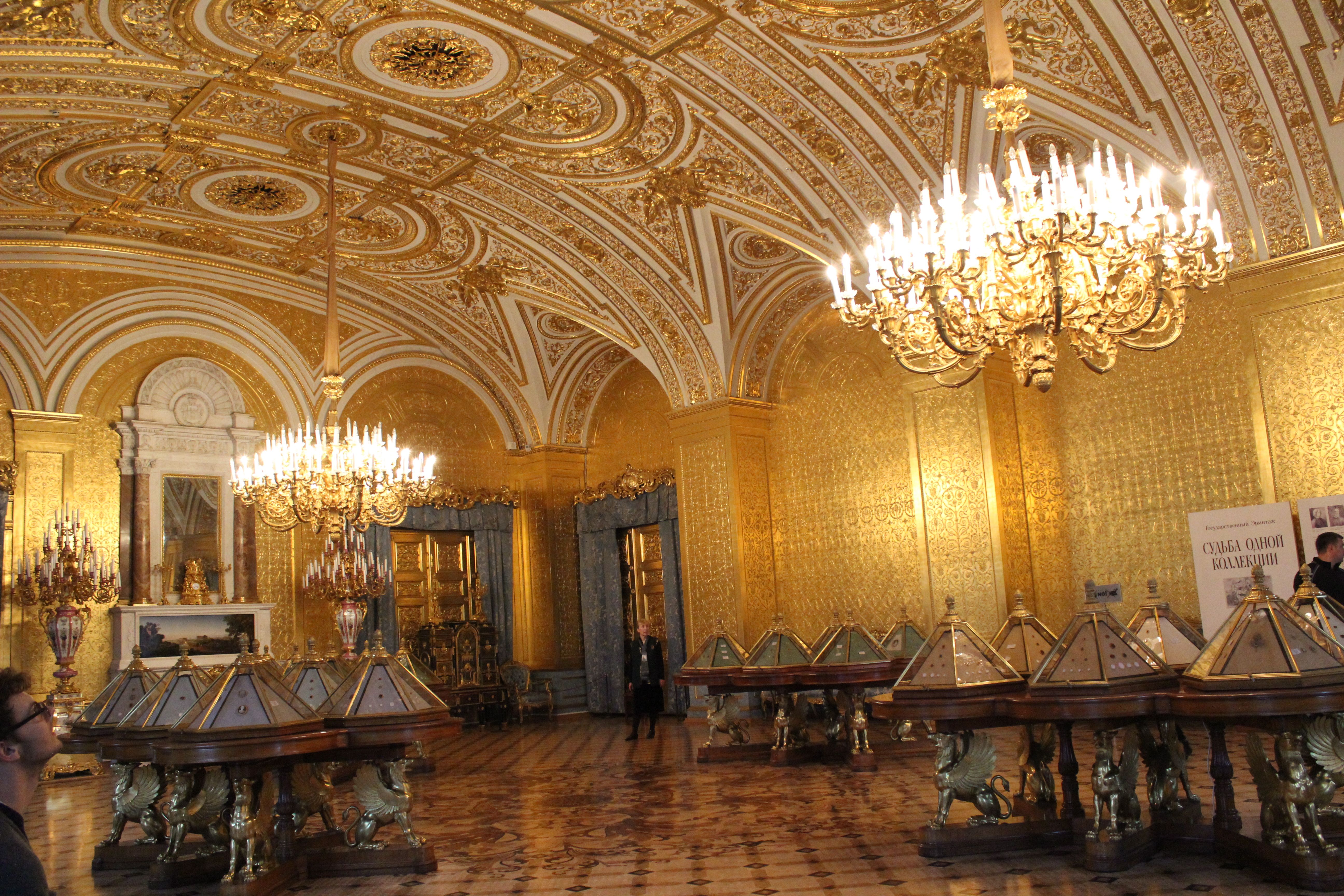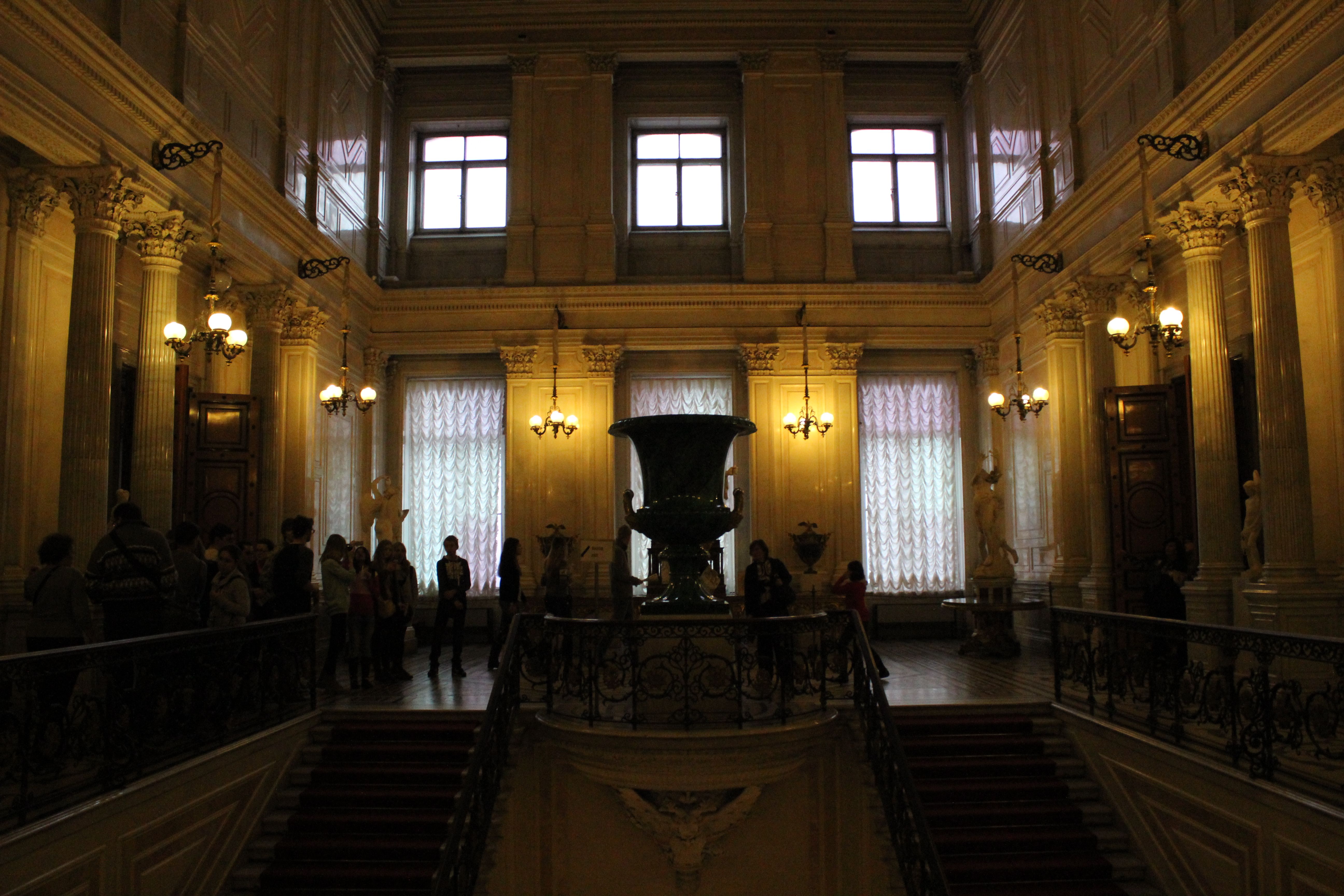 Nachdem wir diese erste Hürde geschafft haben und auch fast ohne Verlaufen im Hostel ankommen und unser Gepäck abstellen, ist die erste Station die Ermitage. Sie ist eines der größten und verdient berühmtesten Kunstmuseen der Welt. In über 350 Räumen befinden sich unglaublich gut erhaltene archäologische Ausstellungsstücke seit dem dritten Jahrtausend v. Chr., mehr als 2000 Plastiken (unter anderem von Michelangelo und Rodin) und Werken von da Vinci, Rembrandt, Rubens und vielen vielen mehr. Neben all der ausgestellten Kunst sind die Gebäude selbst nicht weniger beeindruckend. Wirklich, ich bleibe in jedem Raum stehen und staune. So ist es unmöglich, die drei Etagen aufmerksam durchzugehen. Durch die erste schlendern wir gemütlich als wir merken, wieviel Zeit vergangen ist. Also sind wir etwas fixer in der zweiten, die letzte schaffen wir nicht mehr. Wer die gesamte Ausstellung ausführlich sehen möchte, sollte definitiv mehr als einen Tag einplanen. Für Studenten ist der Eintritt kostenlos, es lohnt sich aber auch für die regulären sieben Euro.