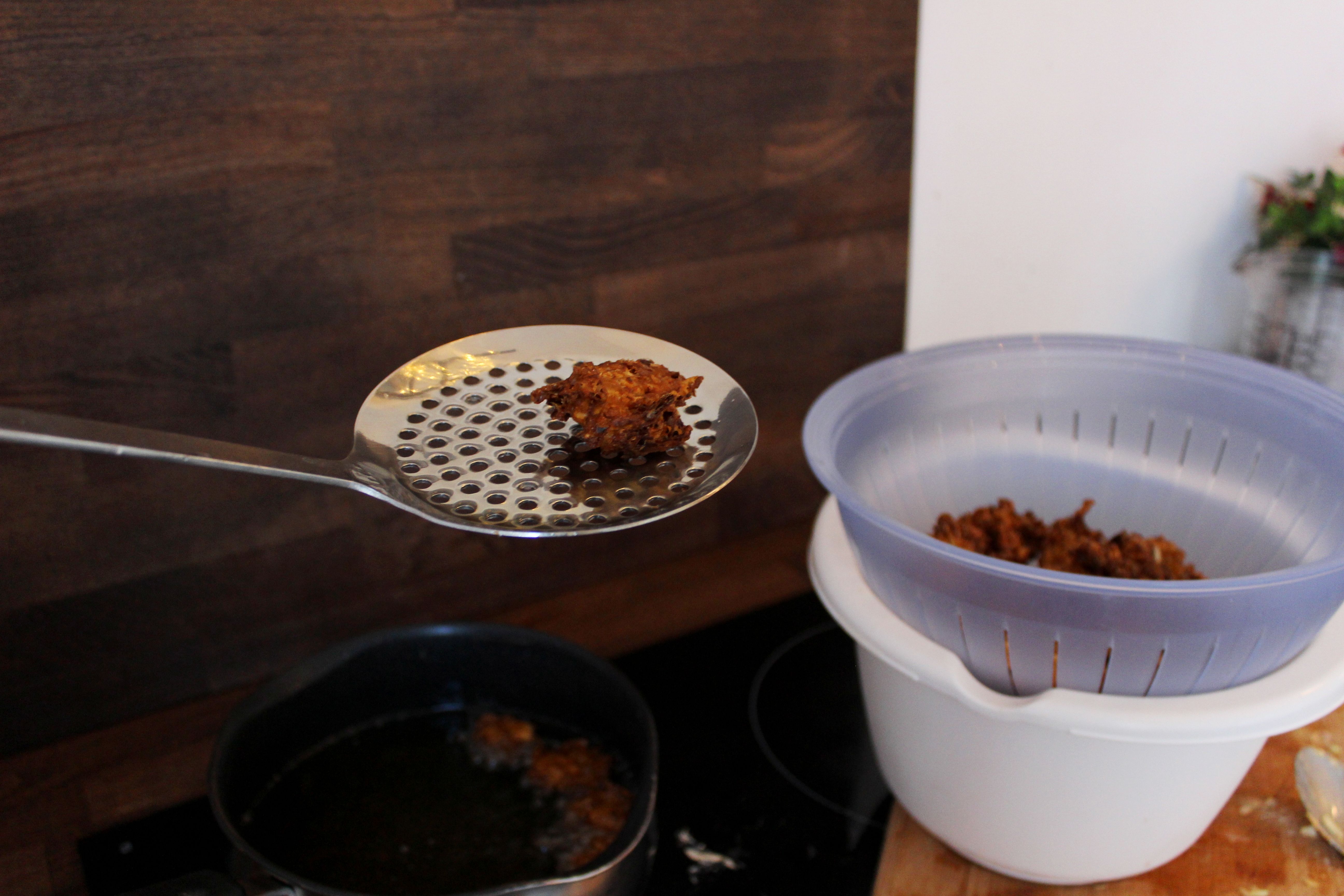 - Die Häufchen abtropfen lassen. Sie sollten jetzt schön knusprig sein.