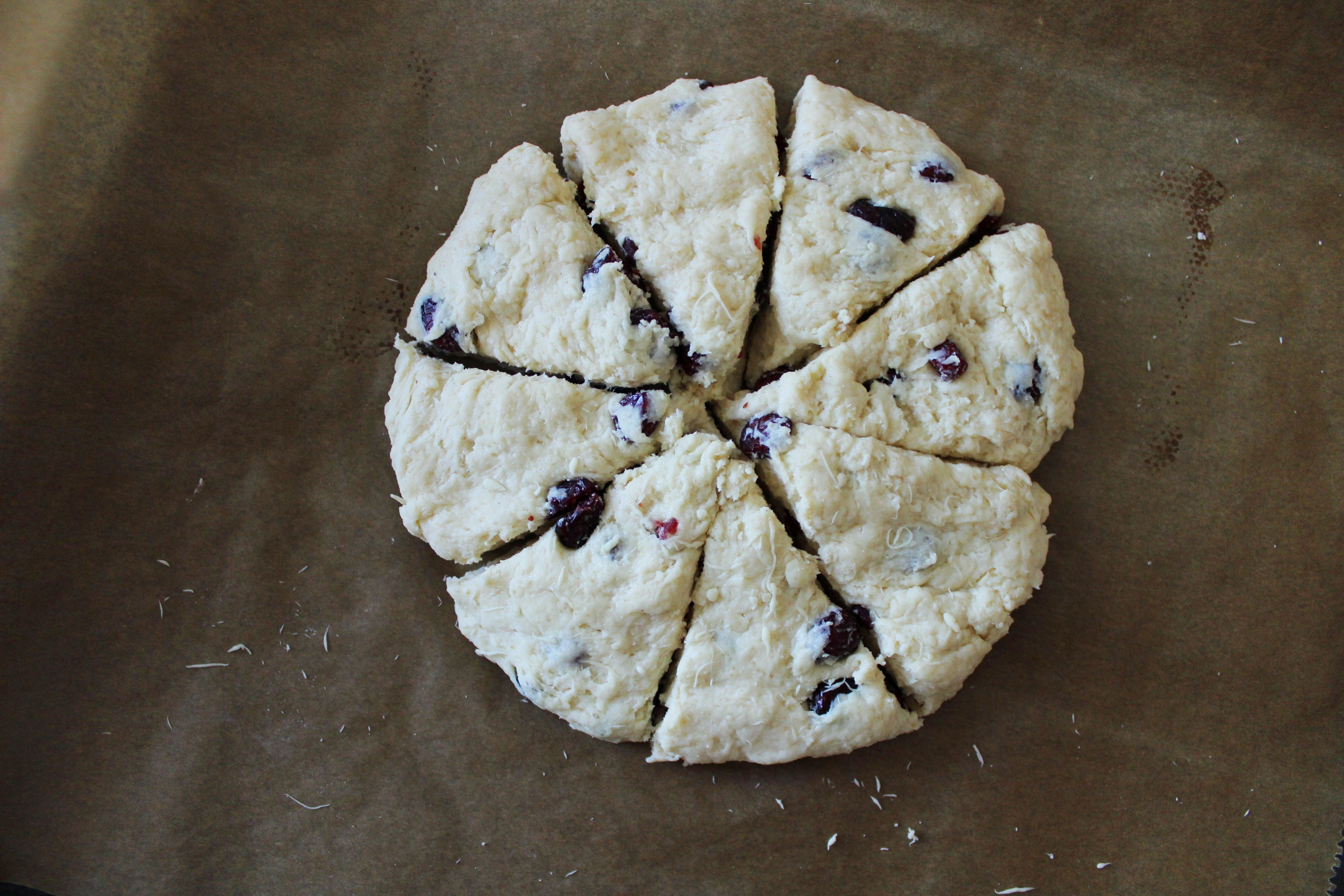 - Die Cranberries und danach die Milch hinzufügen und zu einem nicht zu glatten Teig verarbeiten.