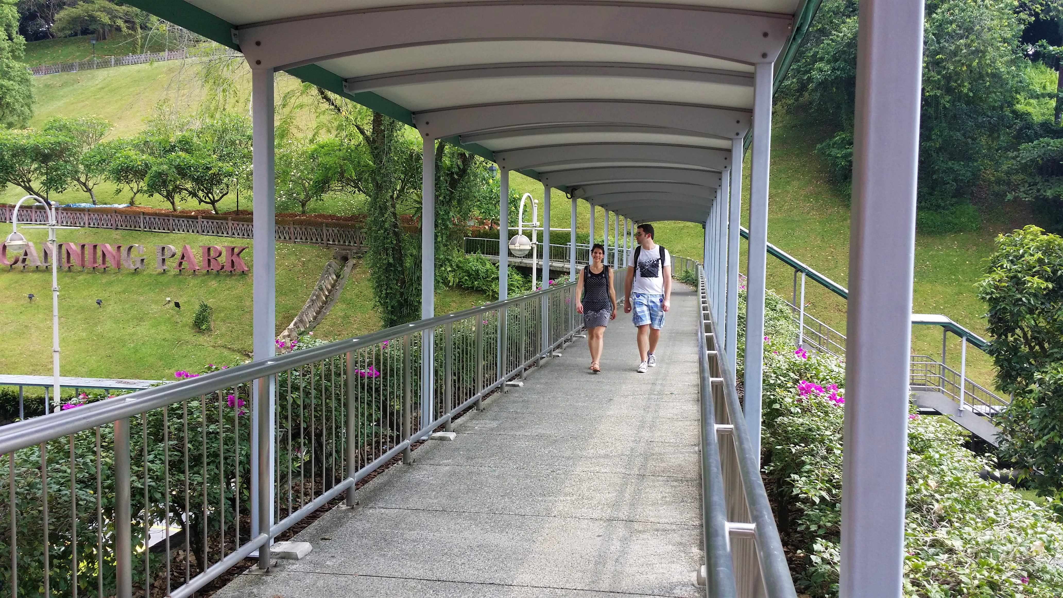 In aller Herrgottsfrühe betraten wir schließlich singapurischen Boden. Nach einem kurzen Stopp im Hotel führte uns unsere erste Expedition zum Fort-Canning-Park, welchen wir über eine – ja – Rolltreppe erreichten. Karstadtatmosphäre im saftig grünen Tropenwuchs. Wir flanierten unter Palmen und anderen gigantischen Pflanzen und staunten über die eine oder andere exotische Tierart: Agamen, Eichhörnchen, Tauben und Moskitos.