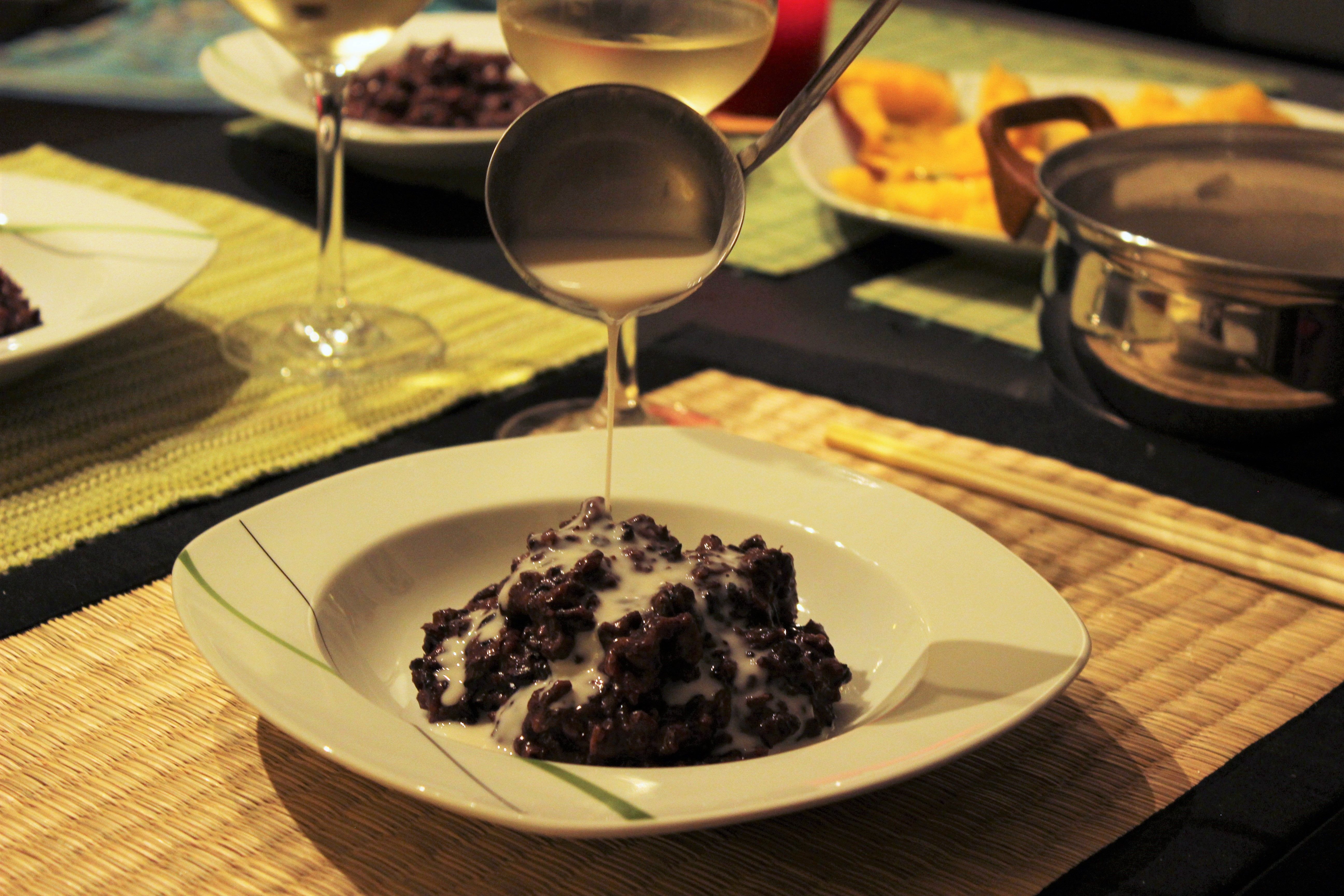 Ihr könnt das Rezept natürlich auch mit weißem Klebreis zubereiten. Dieser benötigt etwas weniger Garzeit als der schwarze. Es gibt aber auch Rezepte, in denen beide Reissorten gemischt werden.