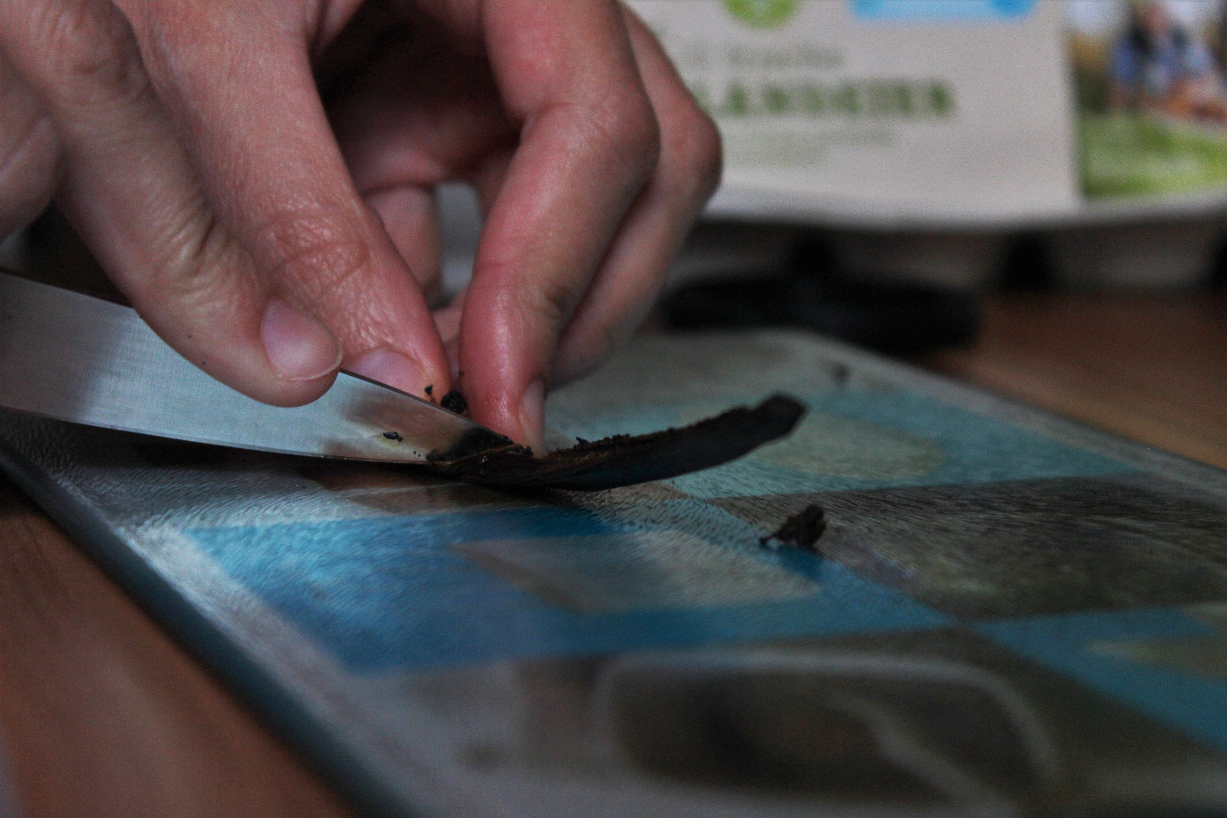 - Vanilleschote aufschneiden und das Mark herauskratzen.
